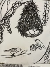 The children learnt charcoal techniques using all different varieties of charcoal pencils and charcoal sticks, both soft and hard. With fabulously messy hands the children used these skills to create distant landscapes and up-close objects of bird nests.