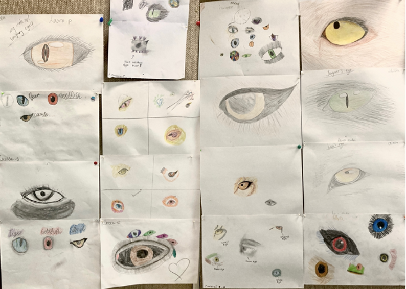 This week we investigated different types of eyes including humans, reptiles, birds and mammals. We focused on observational drawing, looking closely at the student's own eyes in mirrors and from animal references. We discussed the diverse shapes and colours that eyes can be and considered the purpose for these differences. To ensure the eyes are identifiable, we focused on the anatomy of the human and animal eyes.