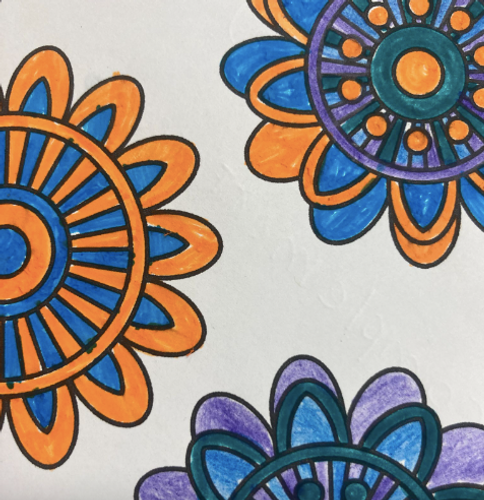 Second week saw us diving straight into colour theory. Playing with glazes and mixed media, we investigated primary colours-mixing to create our secondary colours. We used recycled music paper, sharpies, and layers of transparent acrylic paint. A great project and knowledge base that we will utilise further in week 3.
